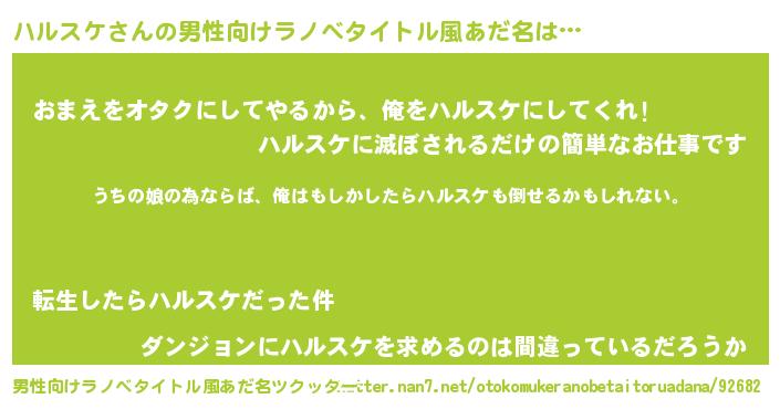 | 女子向けラノベタイトル風あだ名 | 『ハルスケの婚約者』『ハルスケ恋絵巻』 |