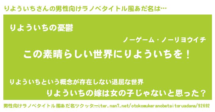 | 女子向けラノベタイトル風あだ名 | 『悪役りよういちに転生したようですが、知った事ではありません』 |