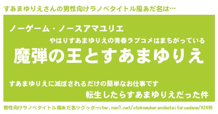 | 意味不明あだ名 | 『住所不定無職すあまゆりえ(2歳)』 |