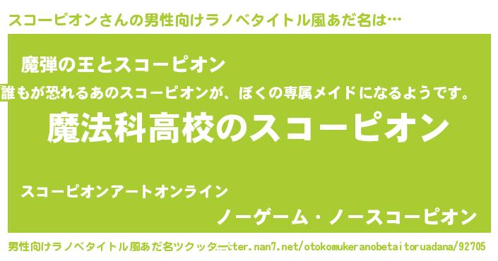 | 女子向けラノベタイトル風あだ名 | 『スコーピオンなんてお断りですっ。』 |