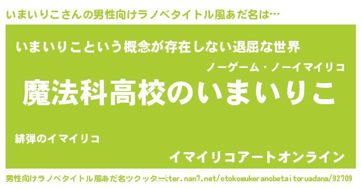 | 女子向けラノベタイトル風あだ名 | 『いまいりこなんてお断りですっ。』 |