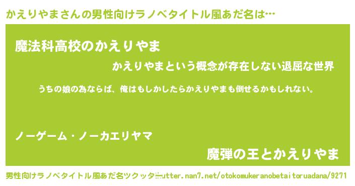 | 意味不明あだ名 | 『かえりやまフォーエバー』 |