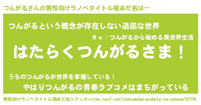 | 意味不明あだ名 | 『永久保存つんがる』『自称つんがる』 |