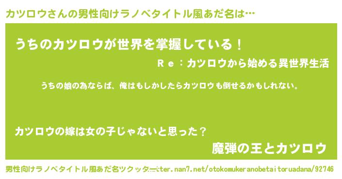 | 女子向けラノベタイトル風あだ名 | 『カツロウの婚約者』 |