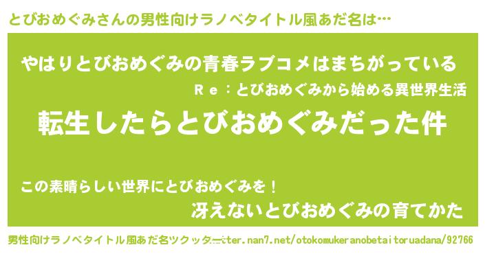 | 胡散臭い通販商品みたいなあだ名 | 『世界が平和になる高級そうな壺…その名も「とびおめぐみ」』 |
