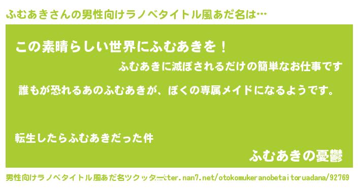 | ヘコむあだ名 | 『ふむあき(爆)』『ふむにー』 |