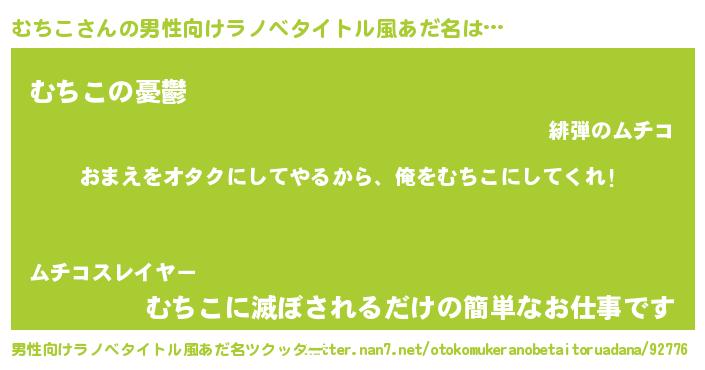 | ヒーロー風カッコイイあだ名 | 『正義の使者むちこ』『スーパームチコ』 |