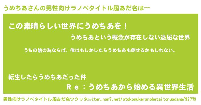 | 女子向けラノベタイトル風あだ名 | 『うめちあ伯爵の花嫁』『闇のうめちあ』 |