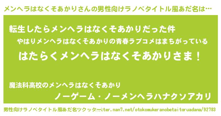 | 胡散臭い通販商品みたいなあだ名 | 『100人中100人が認めた隕石のかけら…その名も「メンヘラはなくそあかり」』 |