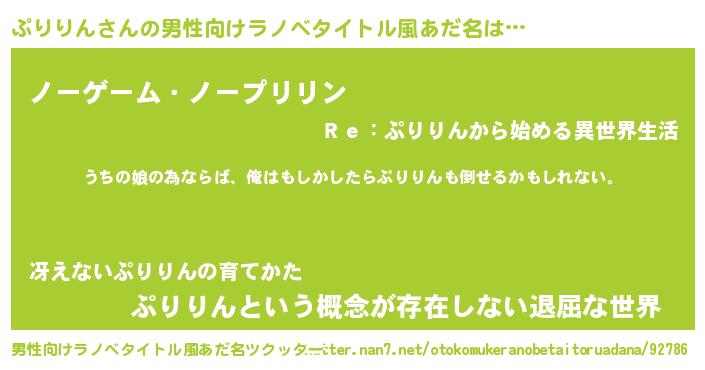| 女子向けラノベタイトル風あだ名 | 『ぷりりん伯爵の花嫁』『闇のぷりりん』 |