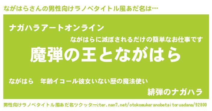 | 意味不明あだ名 | 『住所不定無職ながはら(40歳)』 |