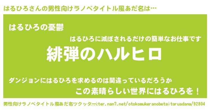 | ヒーロー風カッコイイあだ名 | 『スーパーハルヒロ』『仮面ハルダー』 |