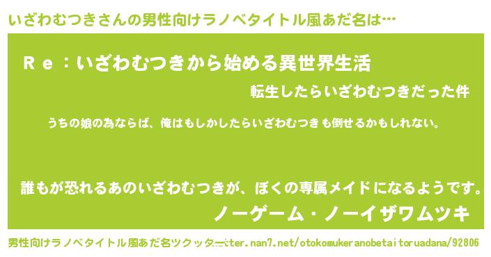 いざわむつきさんの男性向けラノベタイトル風あだ名をツクッター!
