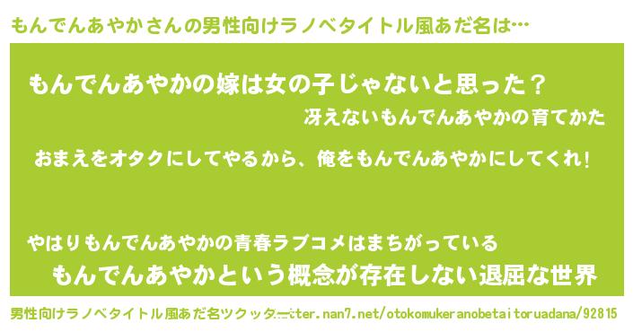 | 女子向けラノベタイトル風あだ名 | 『もんでんあやか恋絵巻』 |