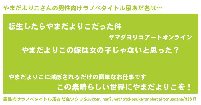| 女子向けラノベタイトル風あだ名 | 『やまだよりこ様がみてる』 |