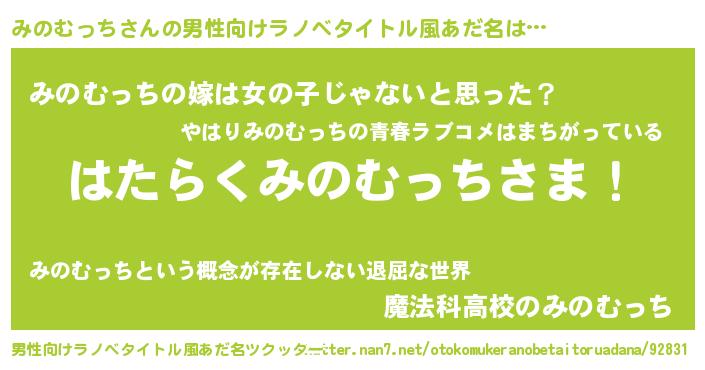 | 胡散臭い通販商品みたいなあだ名 | 『信頼と実績のペンダント…その名も「みのむっち」』 |