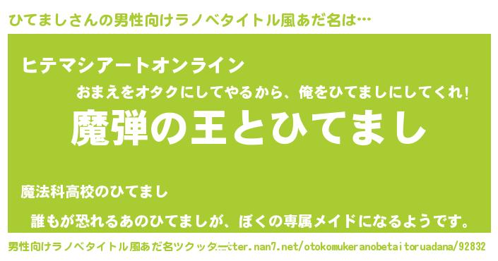 | 意味不明あだ名 | 『住所不定無職ひてまし(65歳)』 |