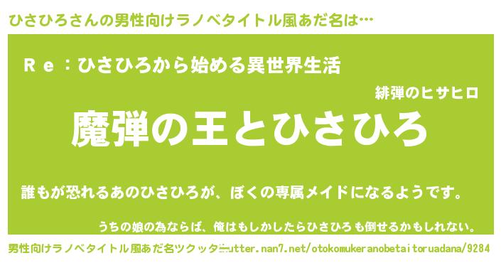 | 女子向けラノベタイトル風あだ名 | 『ひさひろが死なない童話 林檎のひさひろの診療簿』 |