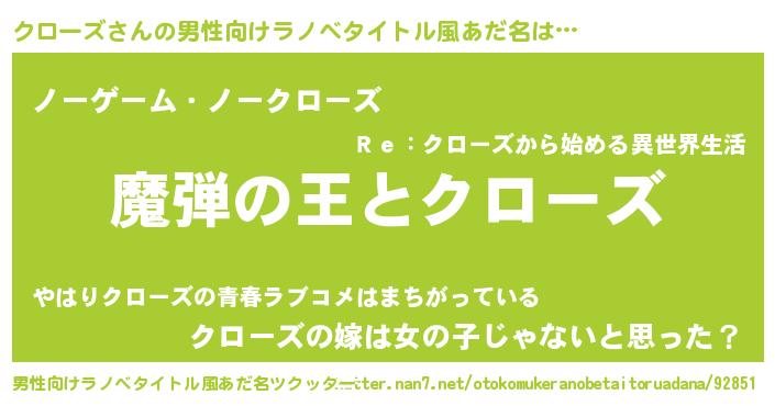 | 意味不明あだ名 | 『住所不定無職クローズ(47歳)』 |