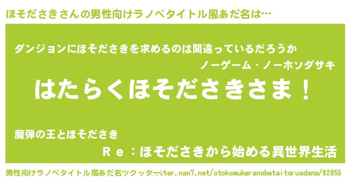 | 女子向けラノベタイトル風あだ名 | 『首の姫と首なしほそださき』 |