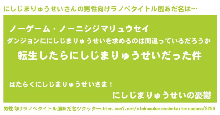 | 料理風あだ名 | 『にしじまりゅうせいごはん』 |