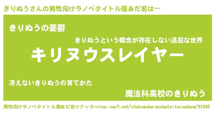 | 胡散臭い通販商品みたいなあだ名 | 『必ず成功する霊験あらたかなお札…その名も「きりぬう」』 |
