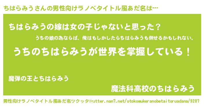 ちはらみうさんの男性向けラノベタイトル風あだ名をツクッター!