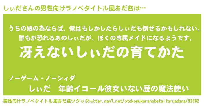 | ヘコむあだ名 | 『なまこ酢』『しぃだ(笑)』 |
