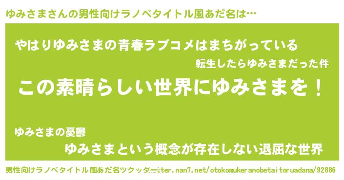 | 意味不明あだ名 | 『住所不定無職ゆみさま(93歳)』 |