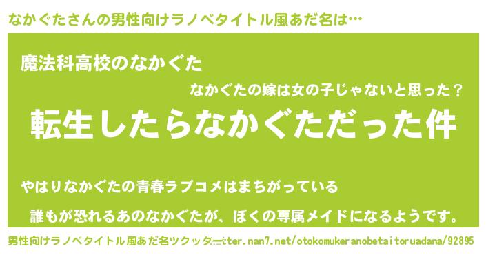 | ヘコむあだ名 | 『なかぐた(苦笑)』『なかお』 |