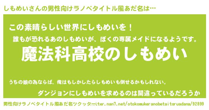 | 女子向けラノベタイトル風あだ名 | 『しもめいなんてお断りですっ。』 |