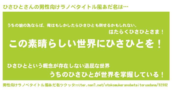 | 意味不明あだ名 | 『住所不定無職ひさひと(2歳)』 |