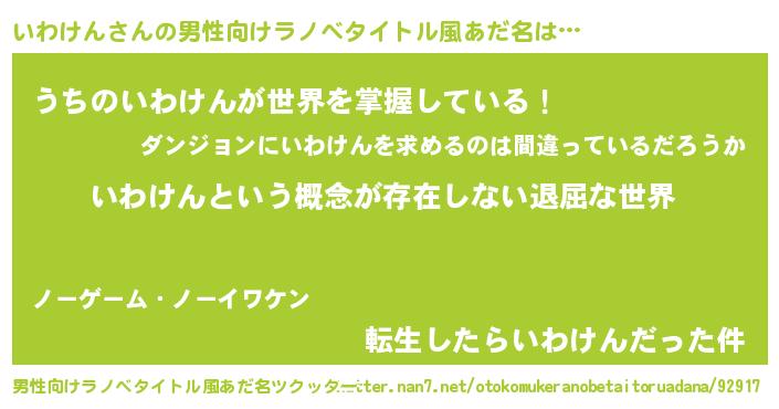 | 胡散臭い通販商品みたいなあだ名 | 『絶対に幸福をもたらす水素水…その名も「いわけん」』 |