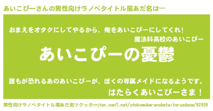 あいこぴーさんの男性向けラノベタイトル風あだ名をツクッター!