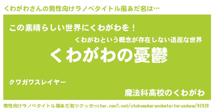 胡散臭い通販商品みたいなあだ名 | 『モテモテ間違いなし霊験あらたかなお札…その名も「くわがわ」』 |