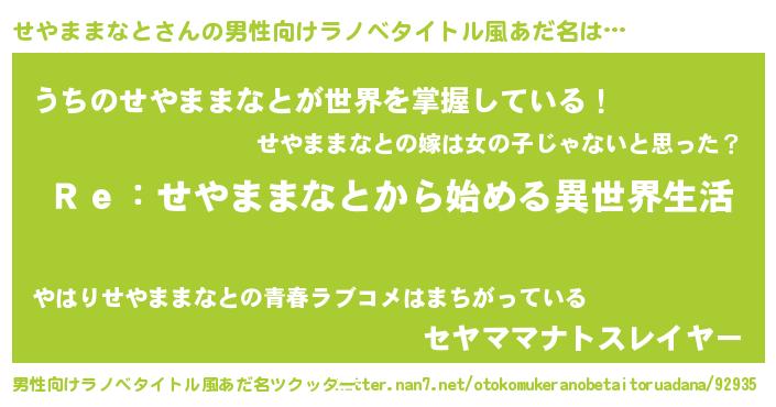 | 意味不明あだ名 | 『自称せやままなと』 |