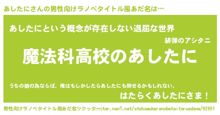 | 意味不明あだ名 | 『自称あしたに』『永久保存あしたに』 |
