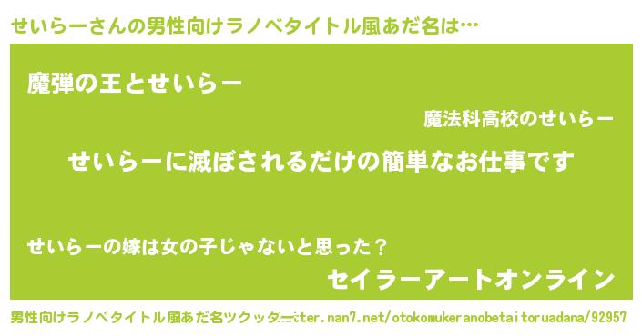 | 意味不明あだ名 | 『住所不定無職せいらー(11歳)』 |