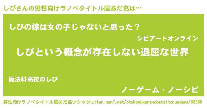 | ヘコむあだ名 | 『しび(笑)』『しびぷりん』 |