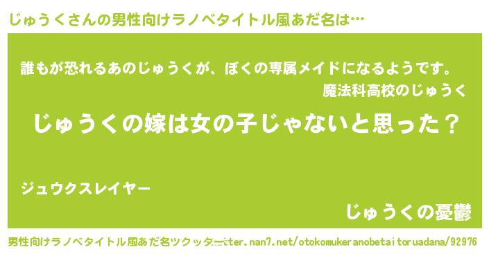 | 女子向けラノベタイトル風あだ名 | 『じゅうく様がみてる』 |