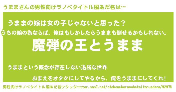 | ヒーロー風カッコイイあだ名 | 『仮面ウマダー』『天弓騎士ウマ』 |