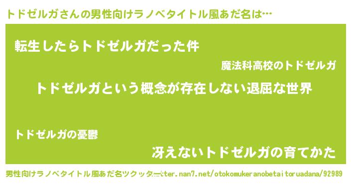 意味不明あだ名 | 『永久保存トドゼルガ』『自称トドゼルガ』 |