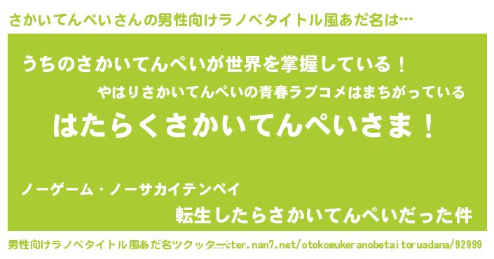 | 胡散臭い通販商品みたいなあだ名 | 『世界が平和になる高級そうな壺…その名も「さかいてんぺい」』 |