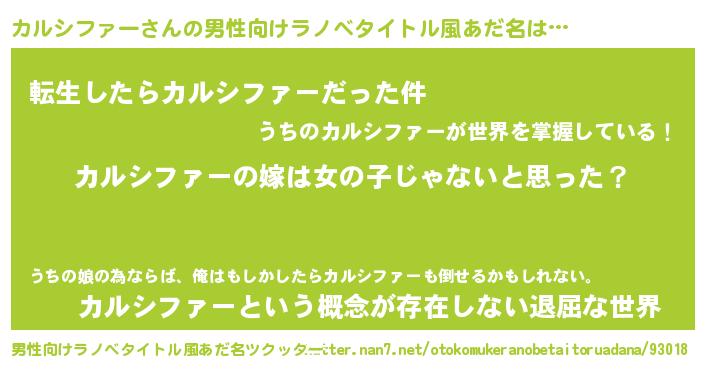 | ヘコむあだ名 | 『カルぷりん』『カルシファー(小並感)』 |