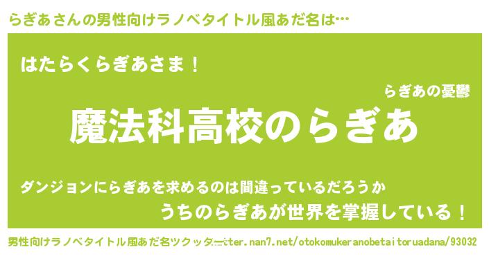 | 意味不明あだ名 | 『自称らぎあ』『ペロリンらぎあ』 |