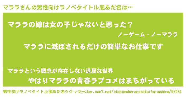 | ヒーロー風カッコイイあだ名 | 『天弓騎士マラ』『ウルトラマララマン』 |