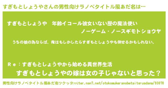 | 女子向けラノベタイトル風あだ名 | 『すぎもとしょうやの婚約者』 |