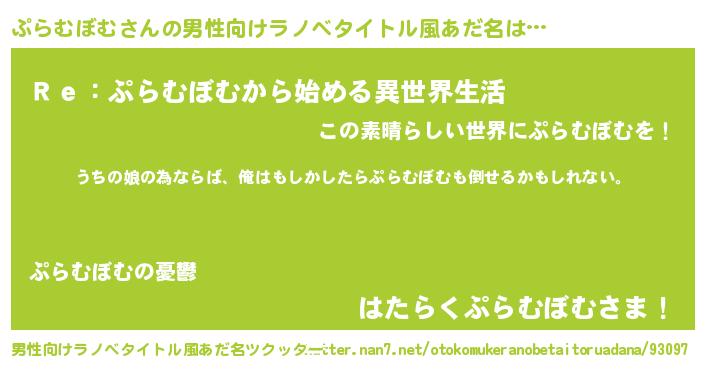| ヘコむあだ名 | 『なまこ酢』『ぷらにゅー』『ぷらお』 |
