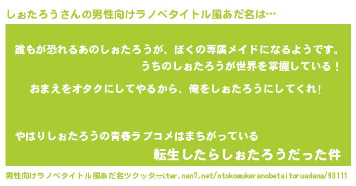 | ヒーロー風カッコイイあだ名 | 『正義の使者しぉたろう』『仮面シォダー』 |
