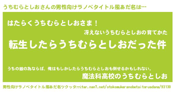 | ロボットアニメ | 搭乗するロボットの名前『うちむらとしおグァンダム弐号機』 |